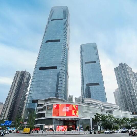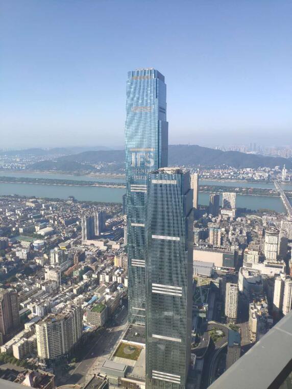 該項目共布置5臺上卷揚式擦窗機,2臺上卷揚式小型擦窗機及標準式吊籃、張開式吊籃、臺手動升降搖椅、動力式吊籃、動力式可伸縮吊籃,負責建筑外幕墻及中央中庭、陽光大廳外側、采光頂室內側、大跨度立面玻璃幕墻的室內外兩側覆蓋所有面材更換及清潔。